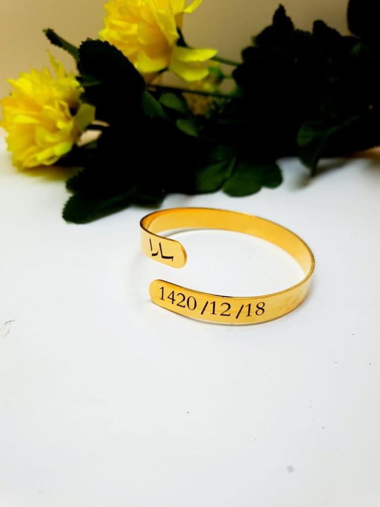 مطلي بالذهب عيار 21 قيراط.يمكنك تخصيص أي اسم أو كلمة (عربي أو إنجليزي).يمكنك اختيار اكثر من اسم في اسوارة وحده.متوفر ذهبي أو فضي.ضمان سنتين على اللون من المتجر.تأتي داخل علبة وكيس